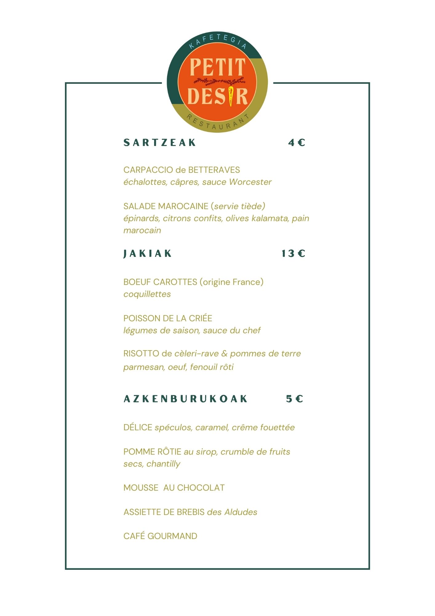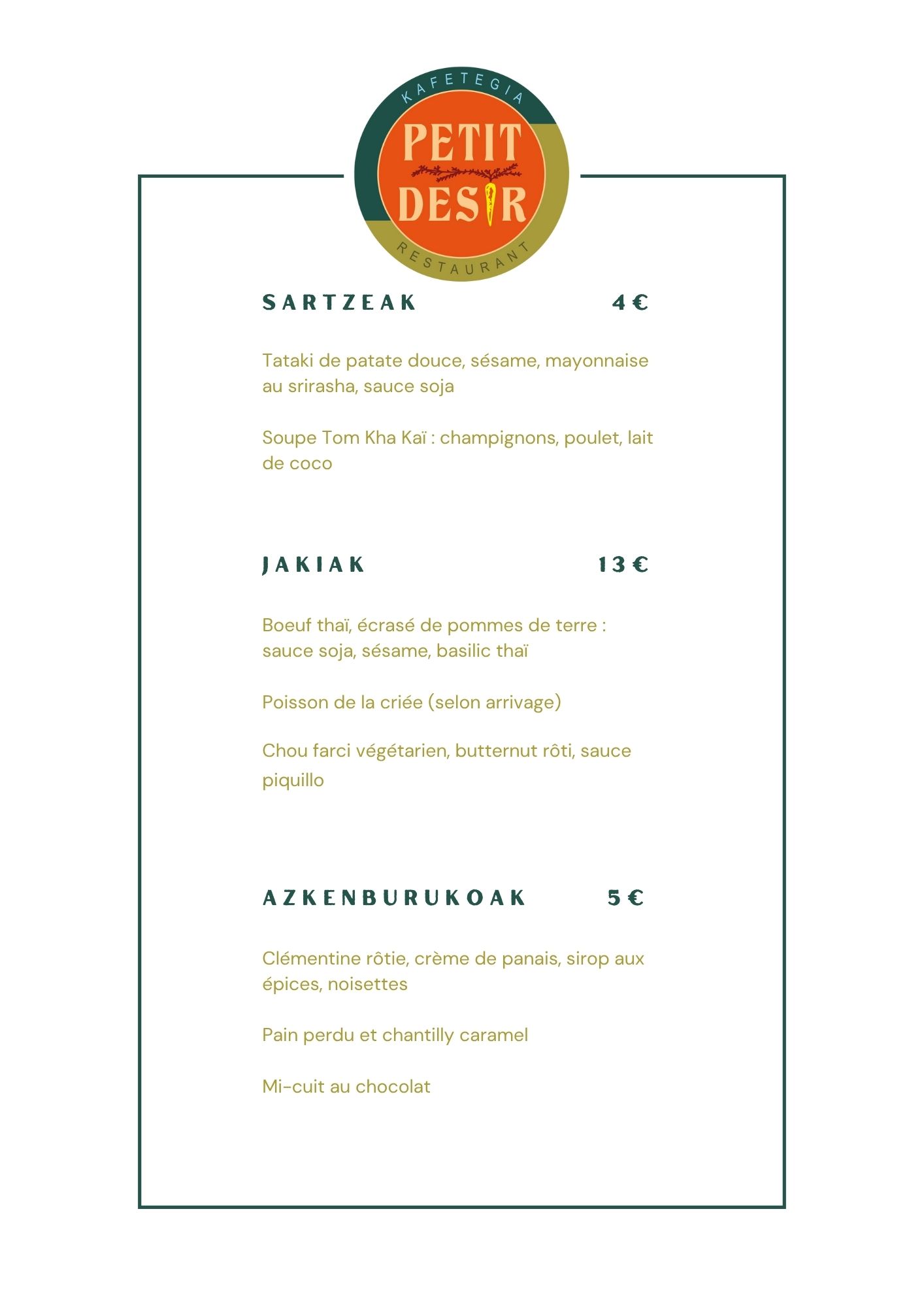 Des suggestions du jour vous sont proposées en plus de la carte.